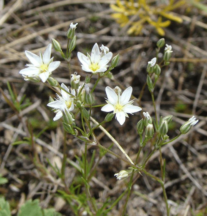 Ботаническое описание. Минуарциа щетинковая Minuartia setacea Hayek. - многолетнее растение с простым, в соцветии ветвистым стеблем. Листья щетиновидные, острые, к основанию расширенные, часто изогнутые. Цветки на голых цветоножках, собраны на верхушках стебля и ветвей в малоцветковые дихазии, иногда щитковидные. Чашелистики яйцевидные, ланцетные, острые, голые, с одной беловатой выступающей жилкой, с двумя зелеными полосками и широким кожистым беловатым краем, при основании твердеющие. Плод - коробочка. Семена почковидно-округлые. Цветет в мае - июле.