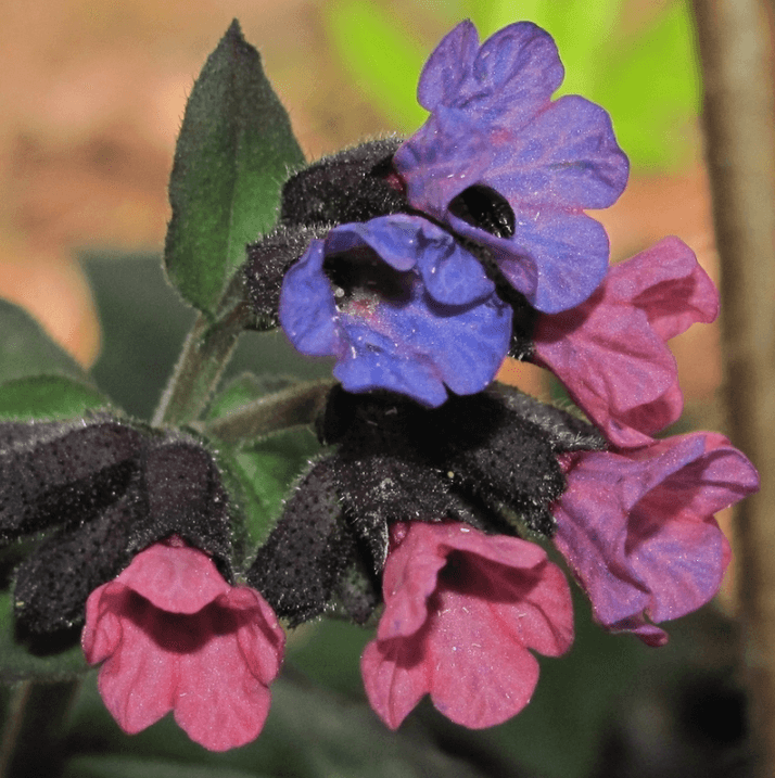 В широколиственных и смешанных лесах Европейской части России, Зауралье и в Крыму иногда среди кустарников и на лесных полянах во второй половине апреля — начале мая можно встретить не совсем обычное растение. Цветки у него сначала розовые, затем фиолетовые, сиреневые или синие. Это один из самых ранних лекарственных первоцветов — медуница неясная. Окраска цветков зависит от их возраста и связана с превращениями антоциановых пигментов.