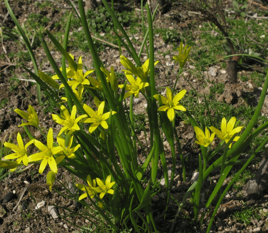 Ботаническое описание. Лук гусиный желтый Gagea lutea L. — многолетнее травянистое растение выстой 8-15 см, с мелкими желтыми цветками и маленькой луковицей. Прикорневой лист широколинейный, к верхушке заостренный; стеблевые листья ланцетные. Цветки собраны по 1-7 в зонтики. Околоцветник простой, венчиковидный. Листочки его снаружи зеленовато-желтые, внутри ярко-желтые, блестящие. Тычинок 6. Пестик трехгранный с верхней завязью. Плод - коробочка. Цветет в апреле - мае. Растет по лесам, кустарникам, склонам, садам, особенно на перегнойной почве, почти повсеместно.