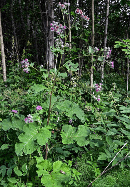 Ботаническое описание. Лопух войлочный Arctium tomentosum - двулетнее растение высотой до 1,5 м, с грязновато- или беловато-пурпурным стеблем, крупным толстым корнем и округлыми мягкими большими листьями. Мелкие темно-пурпурные цветки собраны в корзинки, которые обычно цепляются за одежду человека или волосяной покров животного с помощью паутинистых придатков обертки. Цветет в мае - июле. Растет повсеместно как сорняк.