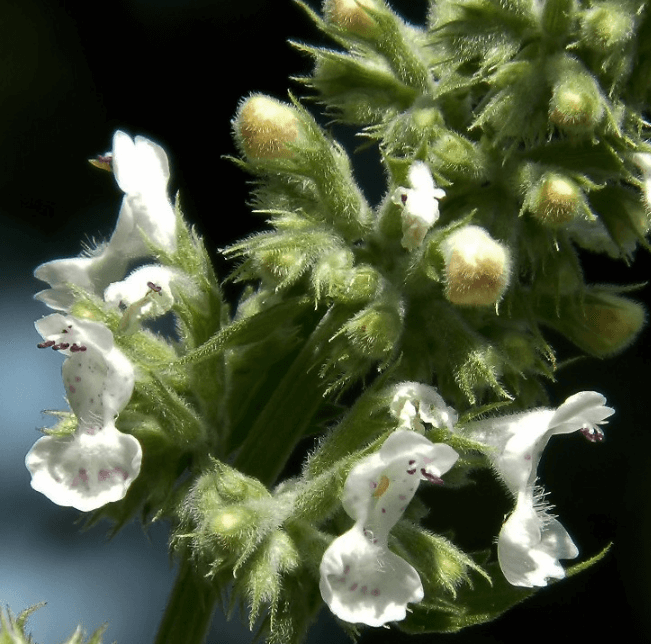 Ботаническое описание. Котовник кошачий Nepeta cataria L. - многолетнее травянистое растение высотой 40-100 см, с четырехгранными ветвистыми стеблями. Листья супротивные, сердцевидно-яйцевидные и продолговатые, остро-пильчатые. Цветки двугубые, беловатые, мелкие, собраны в густые метельчато-колосовидные соцветия. Растение обладает сильным своеобразным запахом и приятно-горьким вкусом, привлекающим кошек (отчего и произошло его название). Цветет в июне - августе. Растет в кустарниках и садах в степной и лесостепной зонах европейской части России, на Кавказе и в Средней Азии. Другие виды: котовник японский (Nepeta japonica).