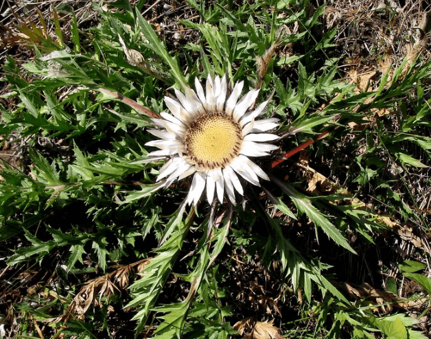 Ботаническое описание. Многолетнее растение, которое закрепляется в почве при помощи длинного стержневого корня. От него отходит розетка листьев, лежащая на почве; листья 5-15 см в длину, грубоперисторассеченные и игловидно-зубчатые. Отдельные листовые сегменты неравномерной величины. Непосредственно на листовой розетке сидит соцветие-корзинка размером от 6 до 12 см, окруженное венцом грубых серебристо-белых оберточных листьев. В середине корзинки много белых, красноватых или желтых трубчатых цветков. Цветет с июля по сентябрь. Встречается и на равнинах, и в горах, где его можно найти на высоте до 2600 м. В Юрских горах на бедных почвах и кое-где по степным склонам колючник пока еще весьма обычен. Чтобы спасти его от вымирания, он взят под охрану.
