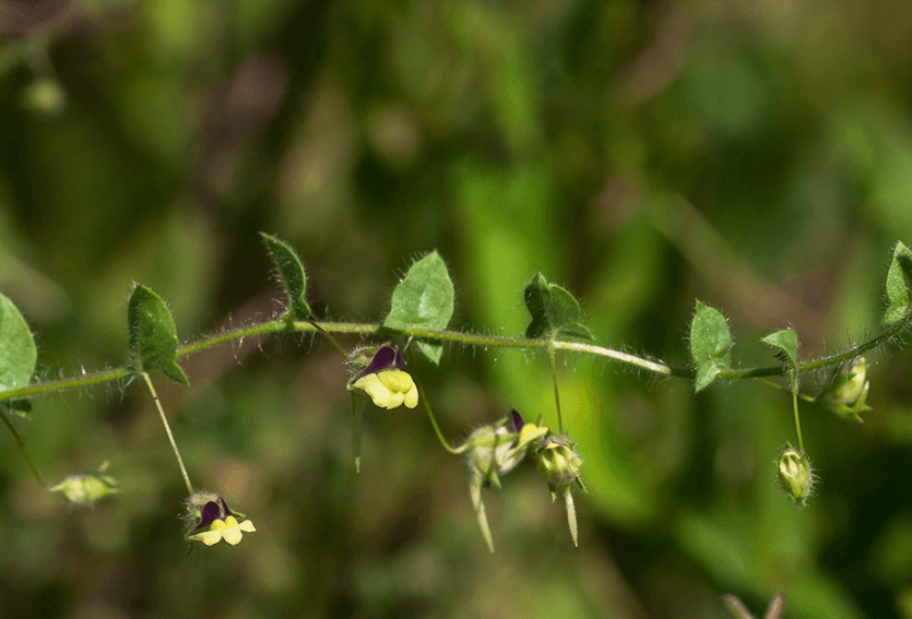 Ботаническое описание. Киксия Kickxia spuria - однолетнее травянистое растение с полулежачим, разветвленным, железисто-волокнистым стеблем длиной 30-60 см. Листья последовательные, округлые или широкояйцевидные, волокнистые, цельнокрайние, черешковые. Цветки одиночные, выходят из влагалища листьев, с волокнистыми черешками длиной 1-2 см, светло-желтые, верхняя губа с внутренней стороны темно-фиолетовая. Плод - коробочка. Цветет в июле - сентябре. Растет на полянах и в посевах в средней полосе России.