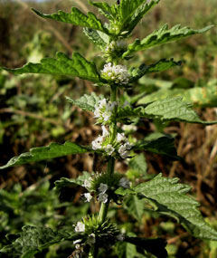 Ботаническое описание. Многолетнее растение с четырехгранным, в верхней части разветвленным стеблем. Листья супротивные, продолговато-ланцетные, пильчатые; верхние - сидячие, нижние - с черешками. Если он растет в воде, то погруженные в воду листья - перисторассеченные. Мелкие, белые, воронковидной формы цветки имеют 4-раздельный венчик с пурпурными крапинками (в зеве и на губе). Цветет с июля по сентябрь. Встречается в Центральной, Южной и Восточной Европе по канавам, берегам водоемов, распространяясь с помощью тонких подземных побегов.