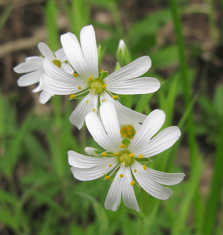 Ботаническое описание. Звездчатка ланцетолистная Stellaria holostea - многолетнее травянистое растение высотой 15-40 см, с ползучим ветвистым корневищем. Стебли приподнимающиеся или прямостоячие, четырехгранные, вверху ветвистые. Листья супротивные, линейно-ланцетные, заостренные, жесткие, по краям шероховатые. Цветки мелкие, белые, собраны в полузонтики. Чашечка несросшаяся, состоит из 5 яйцевидно-ланцетных острых чашелистиков. Венчик раздельнолепестный, из 5 лепестков. Лепестки белые, до половины двунадрезанные, вдвое длиннее чашечки. Тычинок 10. Пестик с 3 столбиками. Плод - шаровидная коробочка, немного короче чашечки. Цветет в мае - июле. Растет по лесам и кустарникам почти на всей территории европейской части России, кроме Крайнего Севера, на Кавказе и в Западной Сибири.