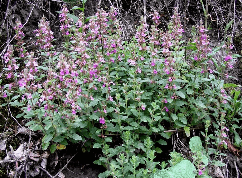 Ботаническое описание. Маленький полукустарник до 25 см высотой с округлыми ветвями, иногда имеющими красно-фиолетовый оттенок. Листья супротивные, зазубренные; цветки розовато-красные, расположены в пазухах верхних листьев. Это европейское растение встречается на солнечных опушках, осыпных склонах, предпочитает известковые почвы.