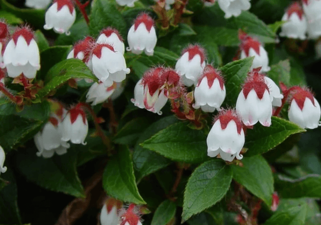 Ботаническое описание. Гаултерия Gaultheria procumbens — вечнозеленый полукустарник высотой до 30 см, с ползучим тонким корневищем и красноватыми стеблями, каждый из которых несет по 5 короткочерешковых листочков. Цветки красноватые, одиночные, на красных дугообразных, отведенных вниз черешках. Плод - ложная ягода. Гаултерия цветет в июне - сентябре. Растет на востоке Северной Америки. Культивируется в Московской и Ленинградской областях.
