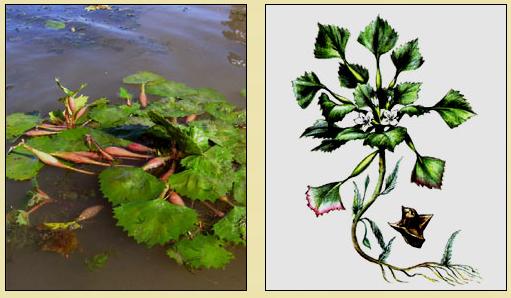 Ботаническое описание. Водяной орех (Тгара natans) — травянистое, однолетнее растение (иногда считают, что оно многолетнее). Плавающий стебель прикреплен ко дну водоема прошлогодним орехом и тонкими буроватыми корнями. При подъеме уровня воды растение может отделяться от грунта и свободно плавать. На мелководье благодаря своему рогатому предшественнику оно закрепляется, заякоривается и укореняется. Затем весьма сложным образом орех образует фотосинтезирующие органы в виде розеток ромбических зазубренных листьев, слегка напоминающих листья березы. Цветки растения четырехчленные, с белыми, изредка розоватыми лепестками, диаметром 8-10 мм. Плод односемянный, костянкообразный. Водяной орех распространен обширно в Европе, Америке, Африке и Азии, но ограничен отдельными местообитаниями. Цветет водяной орех всего лишь несколько часов ранним утром. К особенностям водного растения относится способность легко отрываться от грунта, некоторое время плыть по течению и потом снова с легкостью укореняться. Название этого растения, возможно, произошло от латинского слова «рогатка». Отростки водяного ореха напоминают метательную рогатку, употреблявшуюся против конницы древними римлянами.