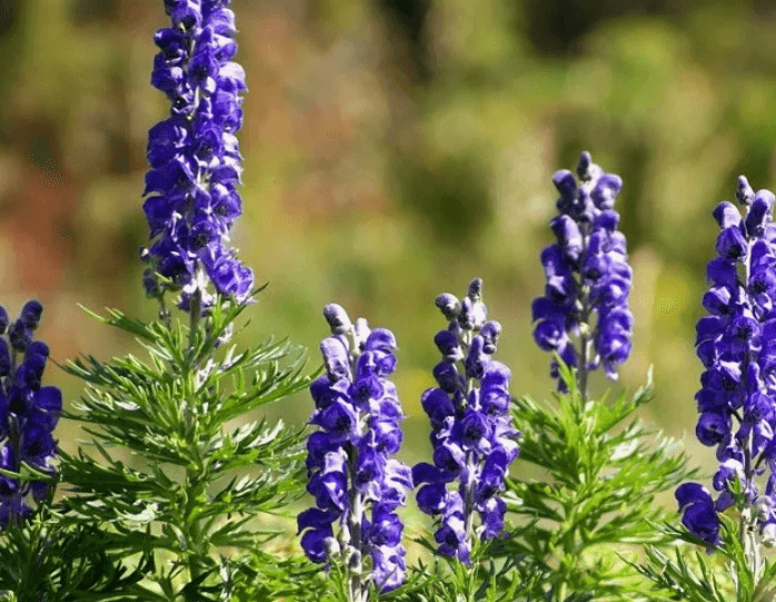 Ботаническое описание. Многолетнее растение с толстыми сочными корнями, которые ежегодно образуют новый клубень, тогда как прошлогодний отмирает. Прямостоячий стебель до 120 (иногда 150) см в высоту с глубоко надрезанными 5-7-лопастными листьями. Темно-голубые шлемовидные цветки на коротких цветоножках собраны в длинную многоцветковую конечную кисть. Цветет с июня до сентября.