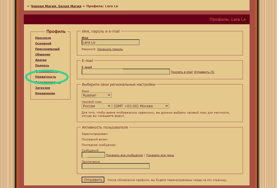 После чего нажмите на кнопку "Приватность":