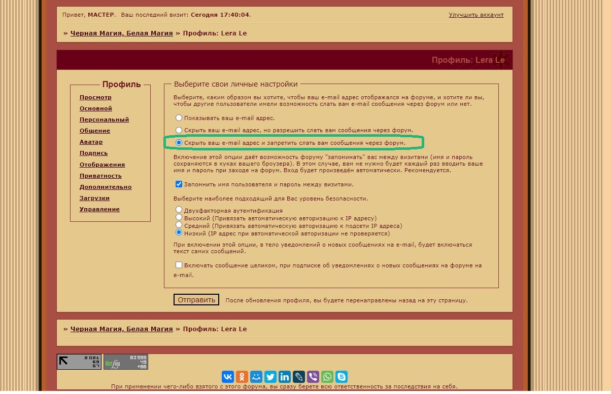 Если здесь стоит галочка на "Скрыть ваш e-mail адрес и запретить слать вам сообщения через форум.", то поставьте галочку напротив слов "Скрыть ваш e-mail адрес, но разрешить слать вам сообщения через форум." или "Показывать ваш e-mail адрес." после чего нажмите внизу на "Отправить", настройки обновятся и теперь Вам снова будут приходить уведомления на почту когда Вы не онлайн на форуме.