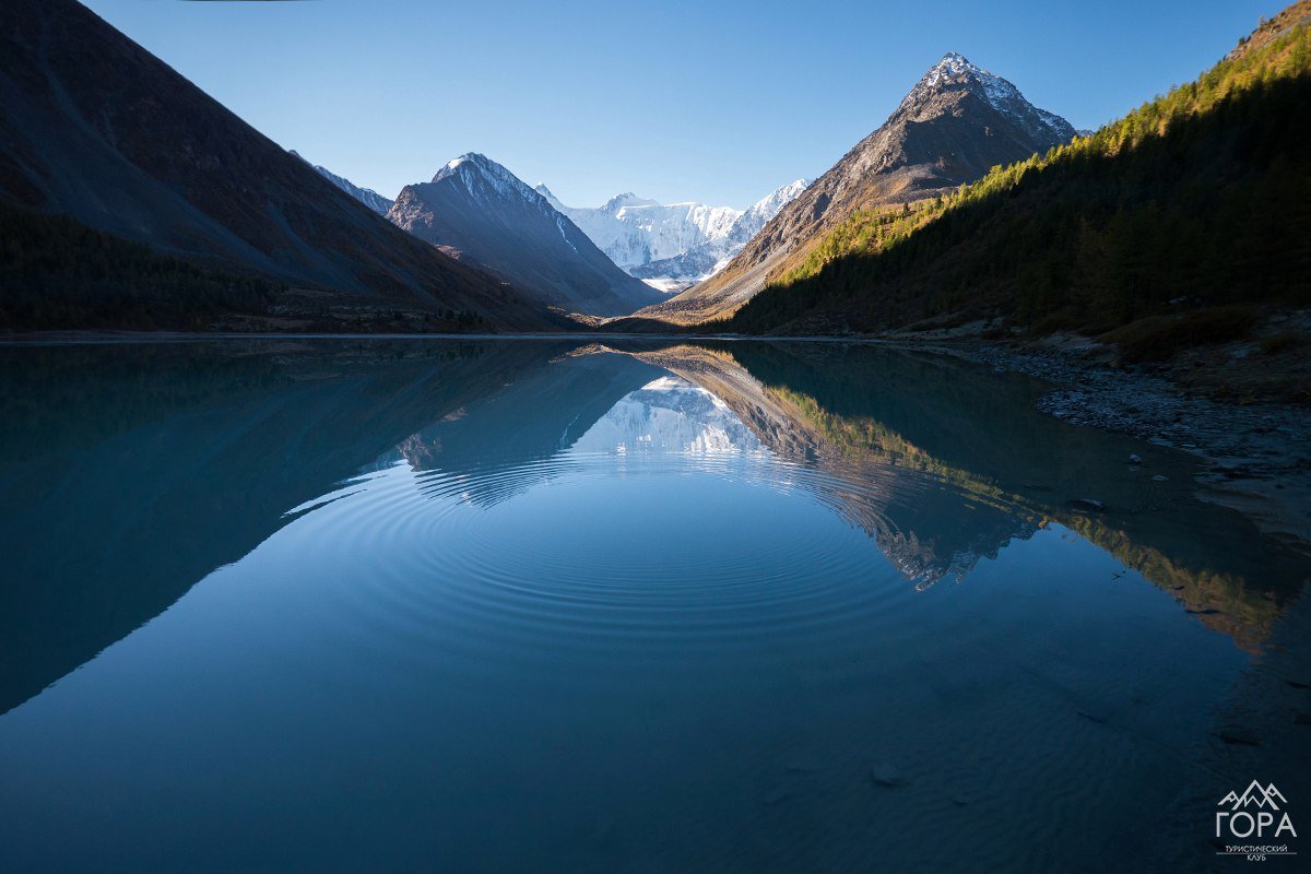 В ближайшей долине – уникальное озеро Равновесия, ледникового происхождения, с кристально чистой водой. На его глади словно в зеркале отражается загадочная Белуха, а вокруг расположены три вершины – #Вера, #Надежда, #Любовь – все, что нужно для счастья человека на этой Земле.