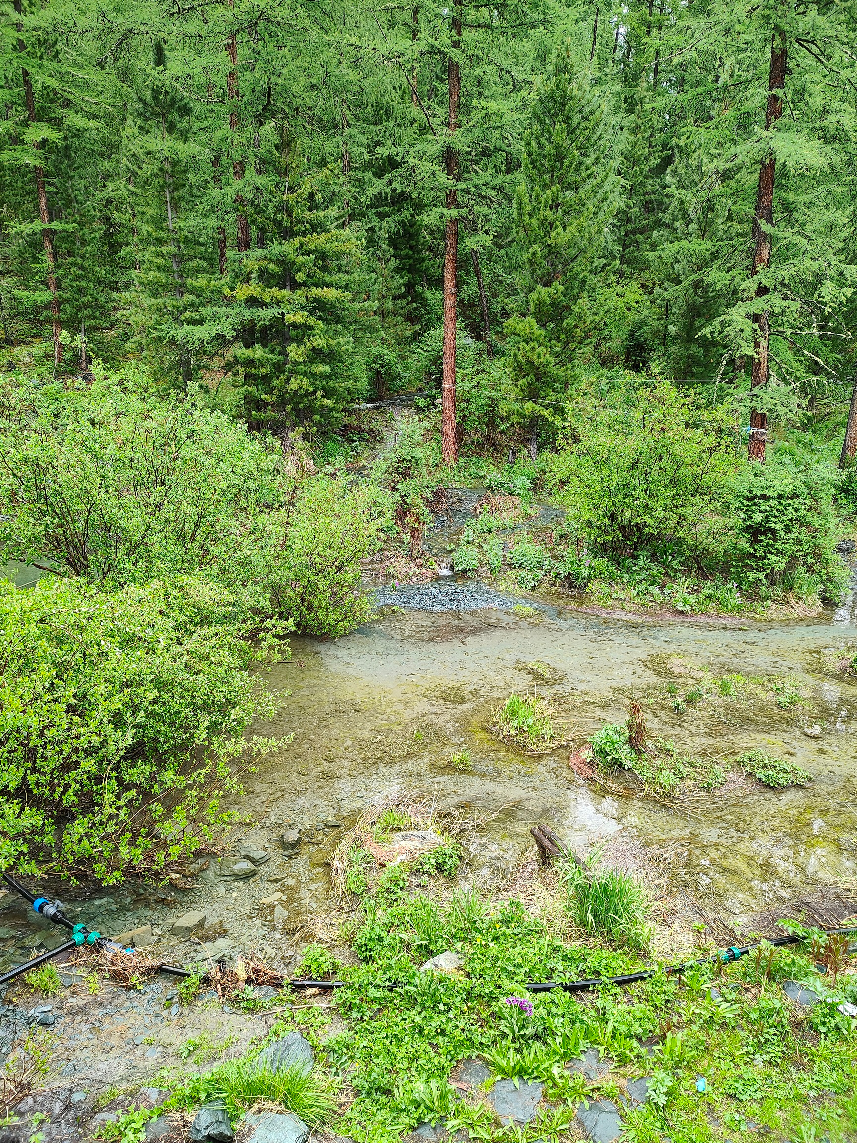 И здесь тоже есть кристально чистая протока с прозрачнейшей водой пригодной для питья: