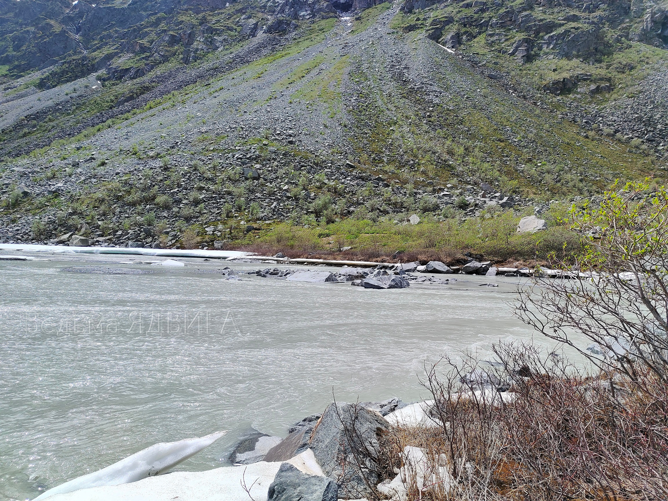 И всё-таки Ак-Кем - очень красивая река, течёт из-под Белухи из ледника, носящего название "Горло Ак-Кема":