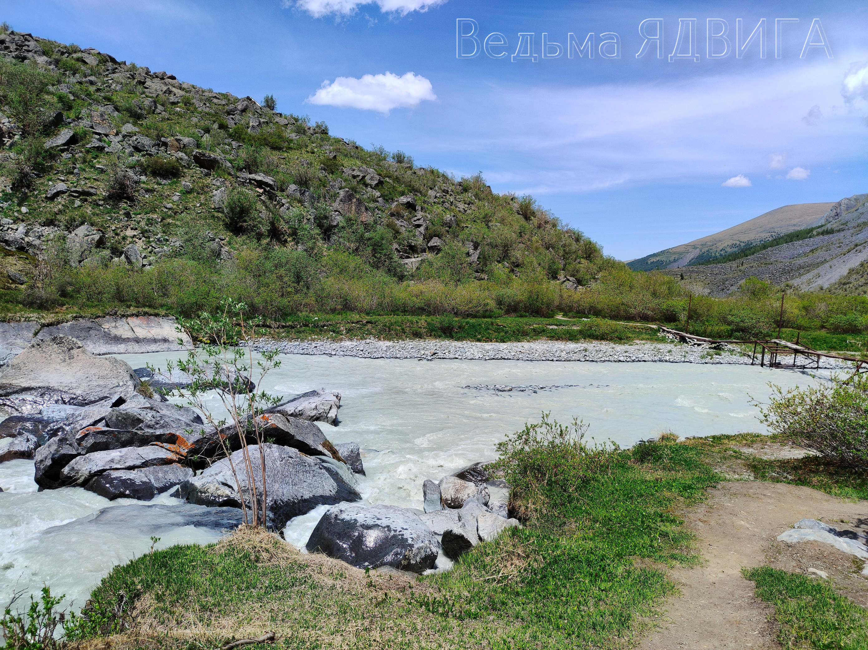 Но опять же повторюсь: этот мост прям СИЛЬНО прочнее и надёжнее, чем может показаться. Он как стоял тут на моей памяти с моего первого посещения Белухи в 2017 году, так и стоит, и по нему ежедневно сотни туристов как ходили, так и ходят.