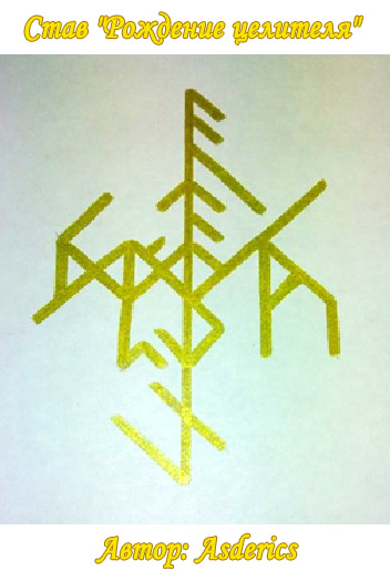 Данный рунический став силой входящих в него рун пробуждает и раскрывает у оператора целительные способности в области массажных техник, и открывает канал ясновидения, чтобы находить причину заболевания в теле, и правильное место для воздействия на теле, а также став открывает способность направлять энергетические потоки на исцеление физического и психического состояния человека.