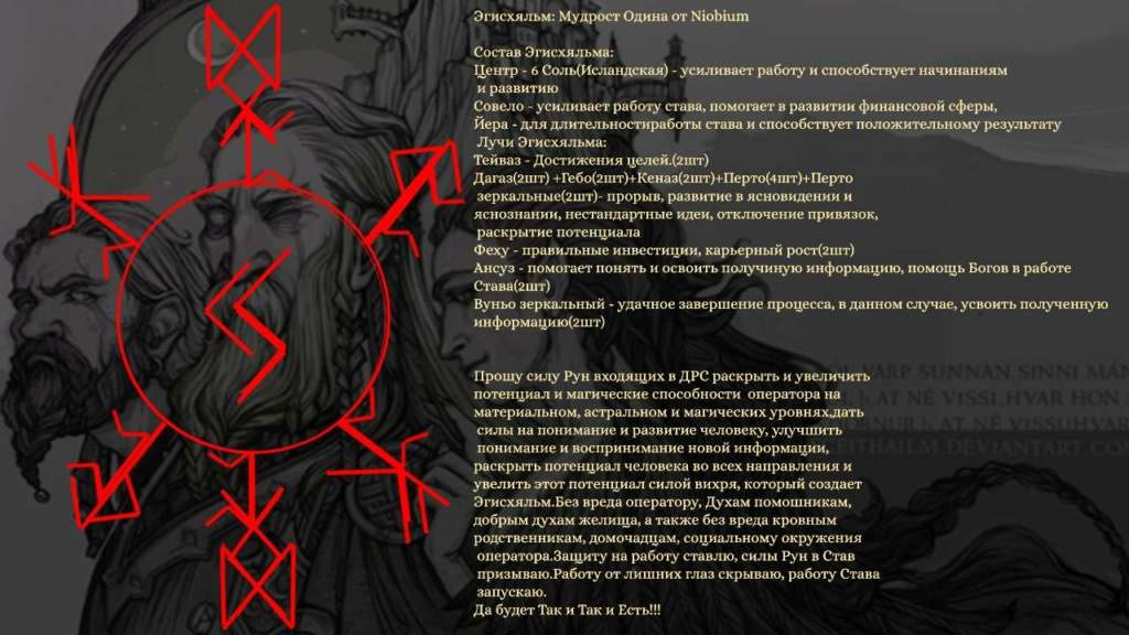 Прошу силу Рун входящих в ДРС раскрыть и увеличить потенциал и магические способности оператора на материальном, астральном и магических уровнях, дать силы на понимание и развитие человеку, улучшить понимание и восприятие новой информации, раскрыть потенциал человека во всех направления и увеличить этот потенциал силой вихря, который создает эгисхяльм.