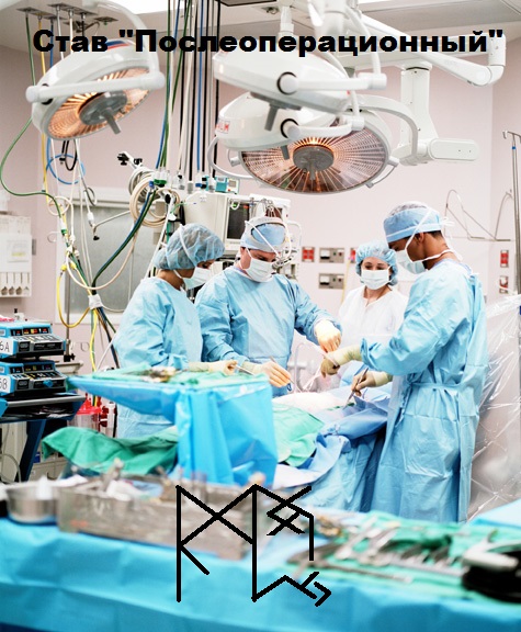 Данный рунический став в течении 1 месяца приводит (имя) к полному восстановлению и исцелению после операции, путем открытия скрытых и спящих резервов организма, очищая организм (имя) мягко и мах гармонично.