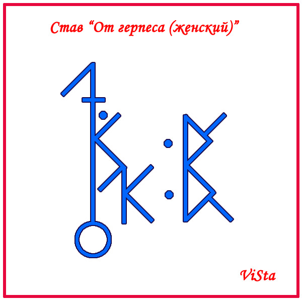 Данный рунический став силой этих рун и магии рун уничтожает вирус герпеса у (.....) снимает боль от него и убирает воспаление.
