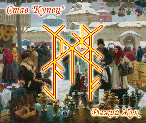 Данный рунический став высвечивает и выделяет меня среди множества мастеров на ярмарке, усиливая харизму и привлекает ко мне покупателей. Помогает привлечь влиятельных людей для моего движения к новым ярмаркам. Открывает перед моим талантом все дороги и пути для реализации моего товара. И прокладывает русло для моего денежного потока.