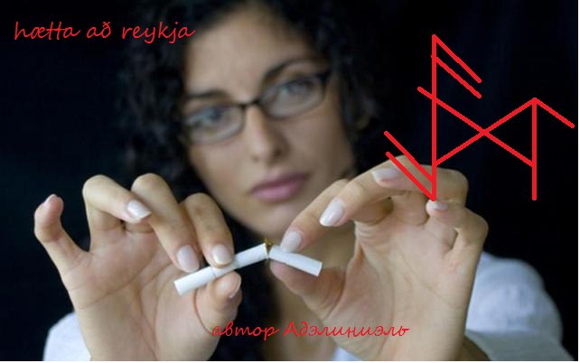 Силой данного Рунического става, под покровительством Великих Богов Асгарда, в такой то с максимальным комфортом для неё будет безвозвратно разрушена и отсечена никотиновая зависимость и все мысли и желания закурить.
