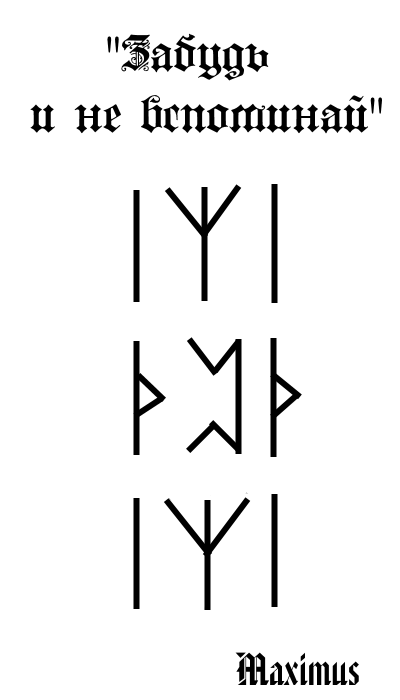 Данный рунический палиндром силою рун создает все необходимые условия и ситуации, при которых человек (указываете Имя того, кто должен потерять интерес к вам) полностью теряет внимание, желание и какие либо возможности воздействовать на оператора в угоду своим целям и намерениям. Данный палиндром отсекает и блокирует все воздействия, производимые (Имя) на оператора и защищает оператора от негативного влияния этого человека(Имя).