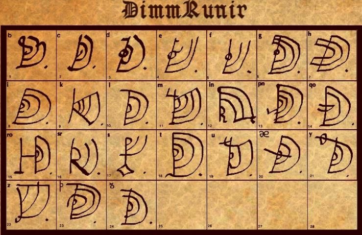 Dimm - это мрачный, темный. Dimmrunir - руны тьмы или темноты.
