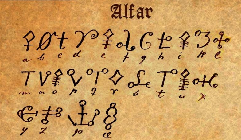 Это эльфийские руно-знаки. Под знаками есть латинские буквы, так их отмечают, чтобы легче переводить было написанные текста. Значение каждого знака ниже. У них руны несли иное значение нежели обычные руны. Сама только в этом разбираюсь, но из первоисточников очень интересно, совсем не то что в интернете.