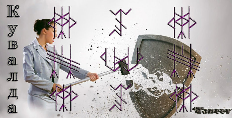 Манназ пер. + 2 Тейваза пер. + 2 Уруза пер. + Турисаз прям. и зерк. - подавление и ослабление личности, ослабление защит, слом воли и желание сопротивляться, слом замков и закрепов на защитах.