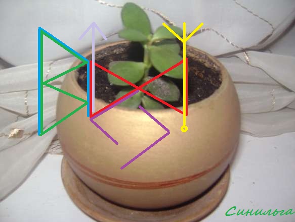 Вязь нарисовать на горшке. Для садовых растений нанести на емкость, где подогревается вода для полива. На поливочные шланги и еще туда, где сработает в этом направлении фантазия.