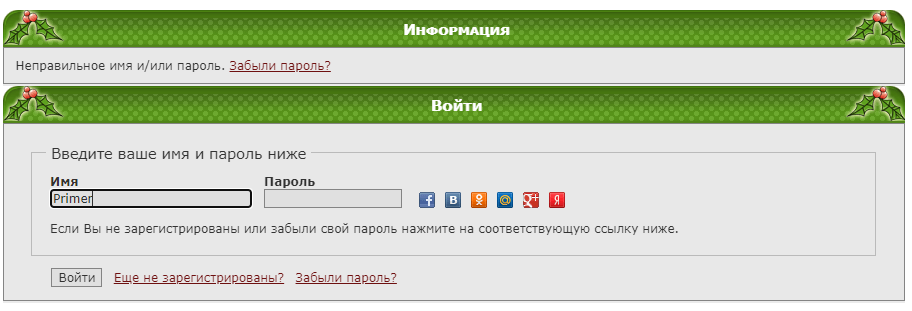 Если Имя и/или Пароль будут НЕ верные, то Вам нужно: