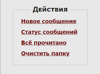 Так вы попадете на страницу где расположена панель Личных сообщений. Панель разделена на две части: «Папки и Действия», вторая часть отвечает за выполнение этих действий (фото).