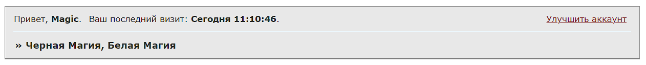 Ниже таблицы расположена статусная панель, в которой указана некоторая информация: приветствие и имя вашего пользователя, время вашего последнего посещения, название форума, на котором вы сейчас находитесь, и дополнительно указывается статус аккаунта - простой или улучшенный (фото).