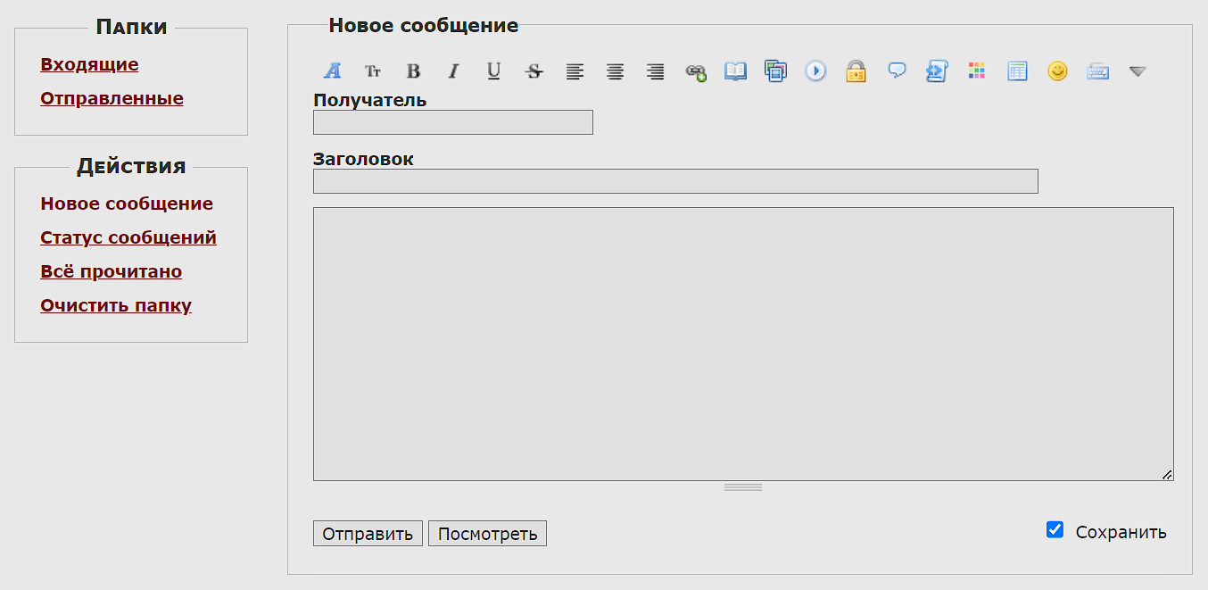 У вас есть две папки личных сообщений: «Входящие» и «Отправленные».
