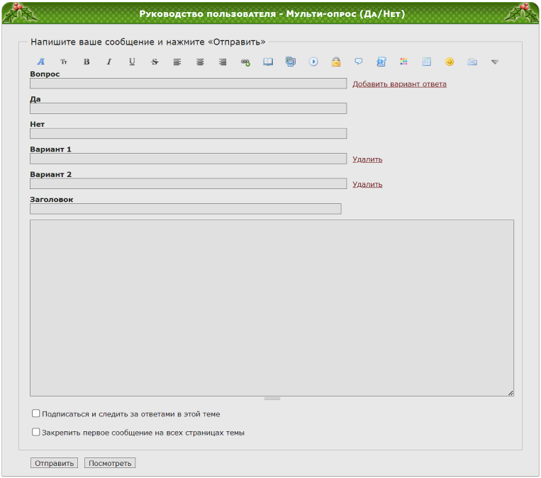 Как и для Формы быстрого ответа, так и для писем есть возможность пользоваться различным оформлением для своих писем. Так они будут выглядеть яркими и красочными. Для ознакомления с возможностью формы перейдите в Раздел III, Расширенные возможности формы ответов.