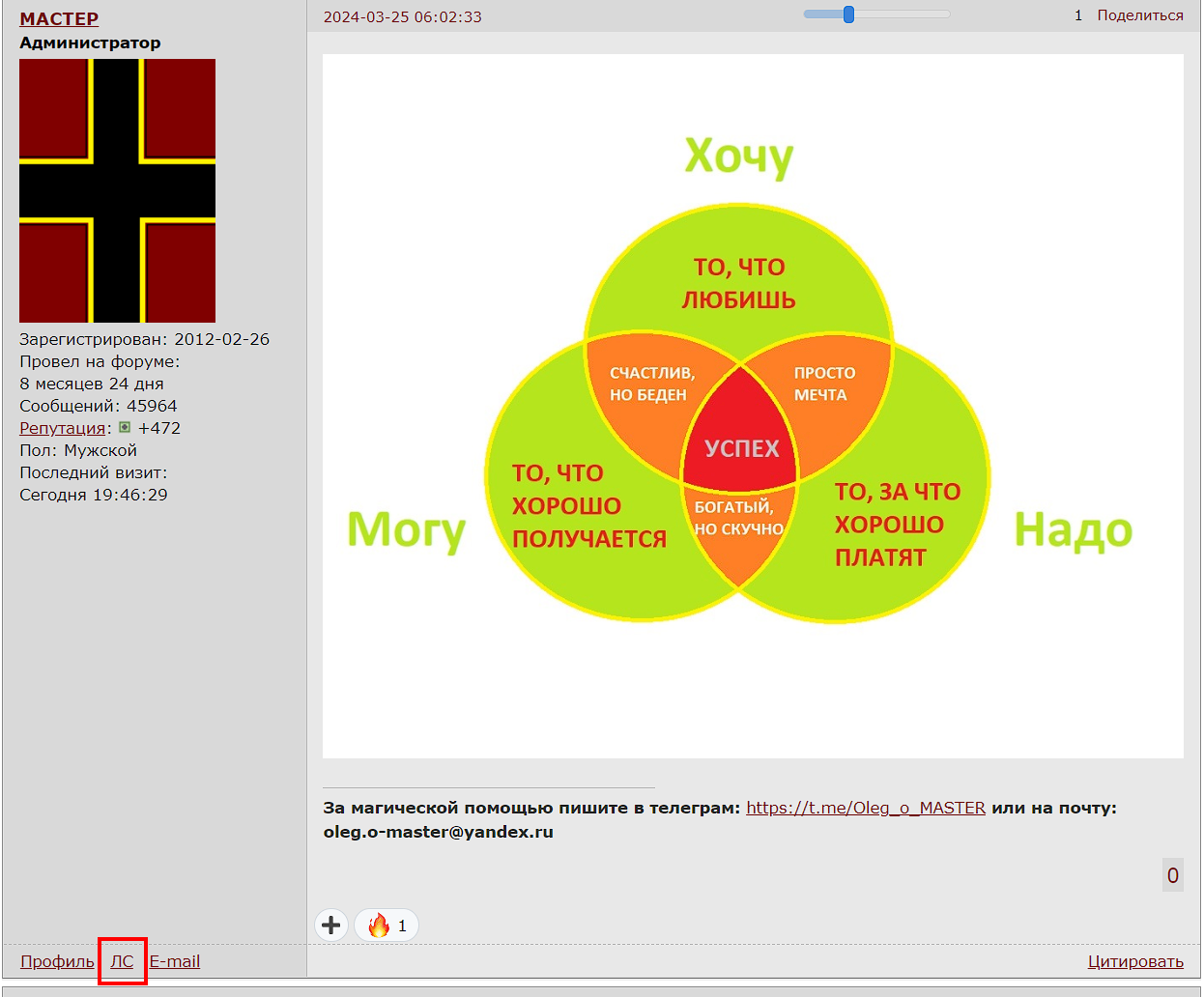 Важно: ваше сообщение будет прочитано только тем пользователем, которому вы отправляете свое сообщение и кто зарегистрирован на данном форуме, другой человек не сможет прочитать ваше сообщение.Чтобы написать Личное сообщение нажмите в верхнем правом углу шапки на пункт «СООБЩЕНИЯ (ЛС)» или перейдите по следующей ссылке: https://chernaya8magiya.0pk.me/messages.php (фото)