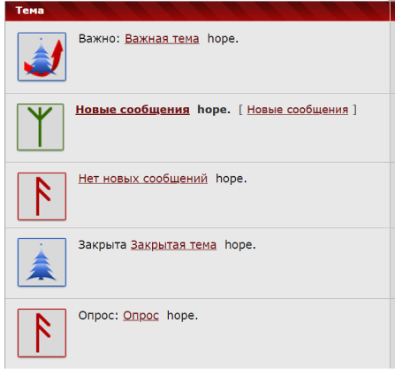 Форум поделен на различные категории, которые делятся между собой на форумы (или разделы), относящиеся к этим категориям. Сверху указывается название категории, ниже слева расположены форумы (или разделы), а справа указывается количество тем и сообщений, и дополнительно указывается название темы, в которой было оставлено последнее сообщение (фото).