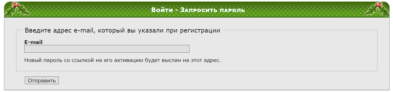 После нажатия на ссылку вам откроется окно с просьбой ввести ваш E-mail , который вы указали при регистрации (фото).