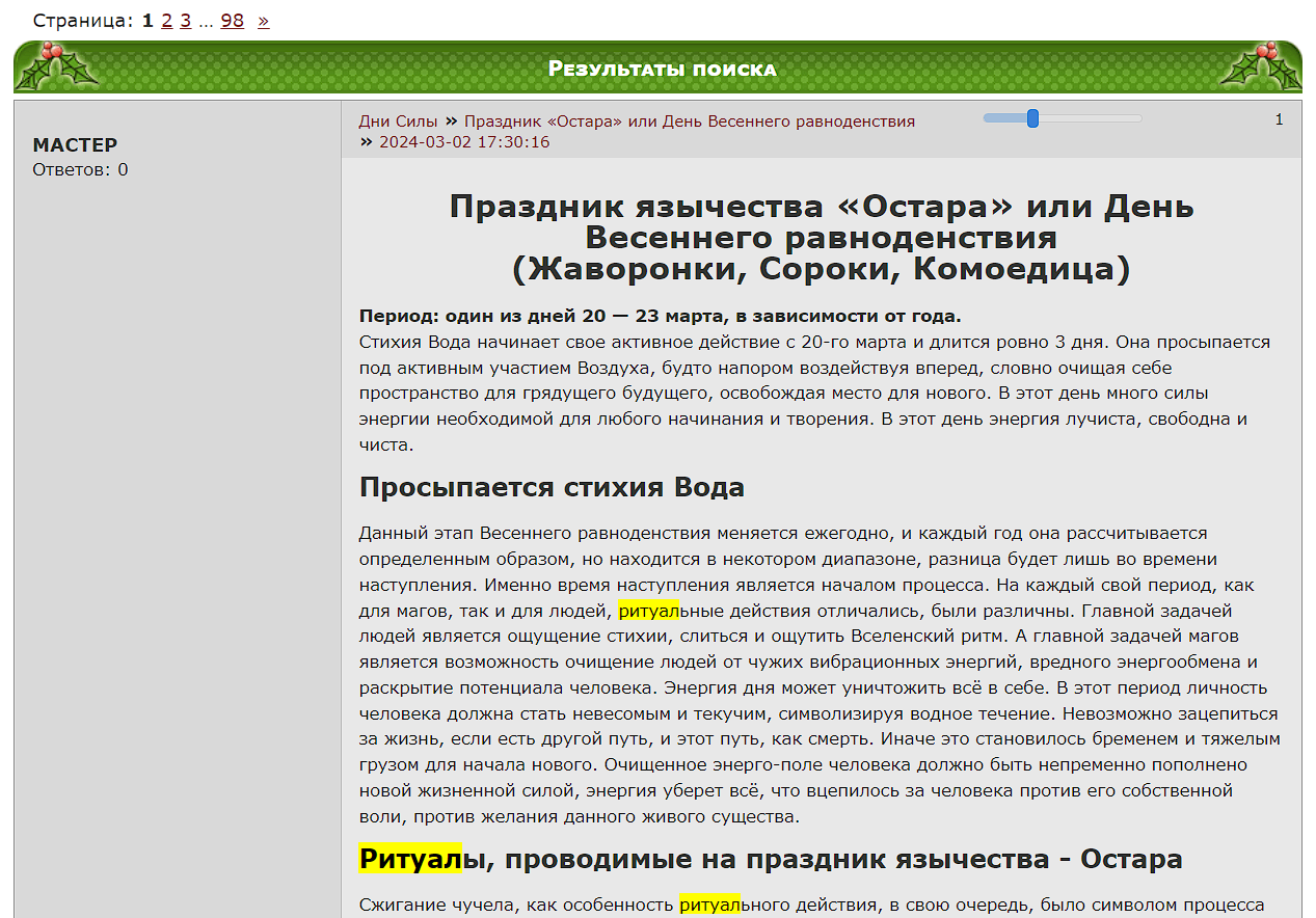 Так, если для примера ввести слово «Ритуал», то результат поиска будет следующим (фото).