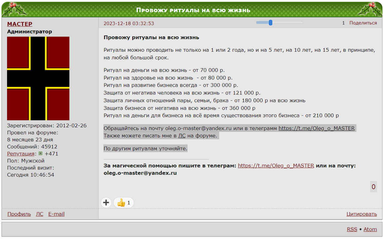 Сайт (далее - форум) «Черная магия, Белая Магия», интернет-ресурс, который помогает вести межличностное общение и получать различную информацию в ознакомительных целях.