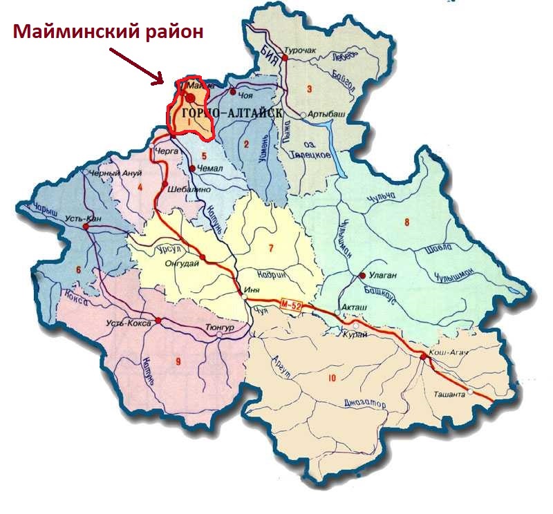 Выделен Майминский район внутри которого г. Горно-Алтайск