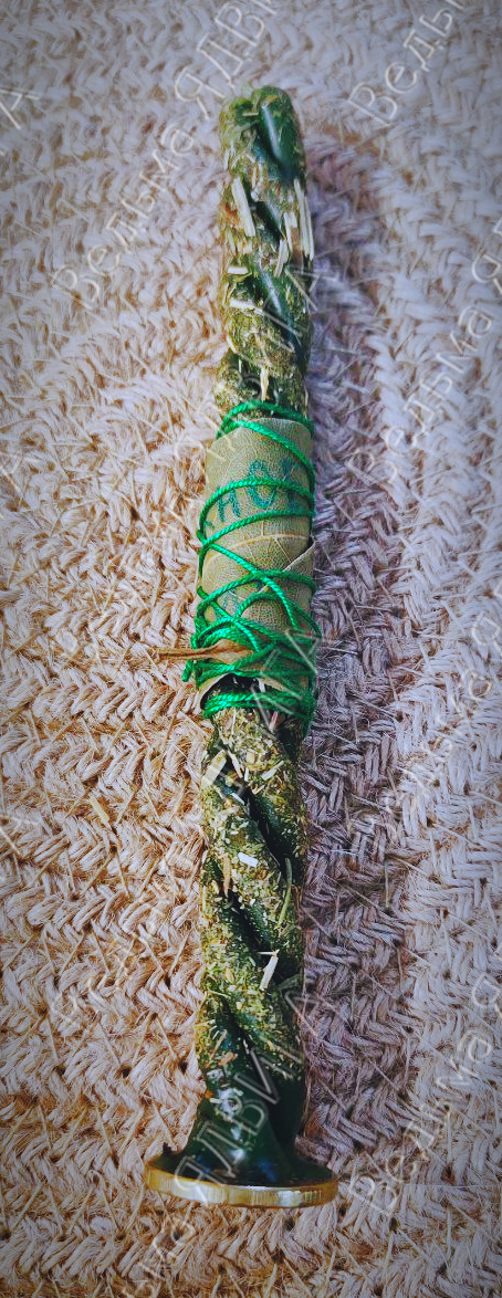 Свечу можно отлить – одну восковую зелёную (допустимо отливать парафин/стеарин/соевый воск с добавлением пчелиного натурального).