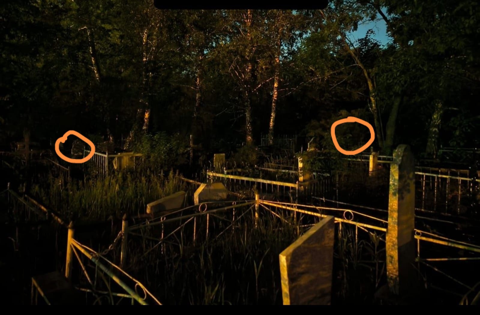 На самом деле я была прямо посредине между выделенными областями, Но чисто физически это ближе к правой области, так как то, что выделено слева - сильно дальше вглубь. Даю 0,5 балла за смещение фокуса вправо. Я могу сказать, что Вас могло смутить и сбить фокус огромное количество людей на кладбище - реально вокруг было неадекватно много людей, похорон не было, но народ прям тусовался там. И вот примерно там, где Вы выделили область моего предположительного нахождения, но ЗА кустами реально пару раз проходили люди, причём даже мимо меня, а если вглубь - то там долго косили траву мотокосой почти все два часа моего пребывания там. Так что даю ещё 1 балл за то, что ощутити тут живого человека.