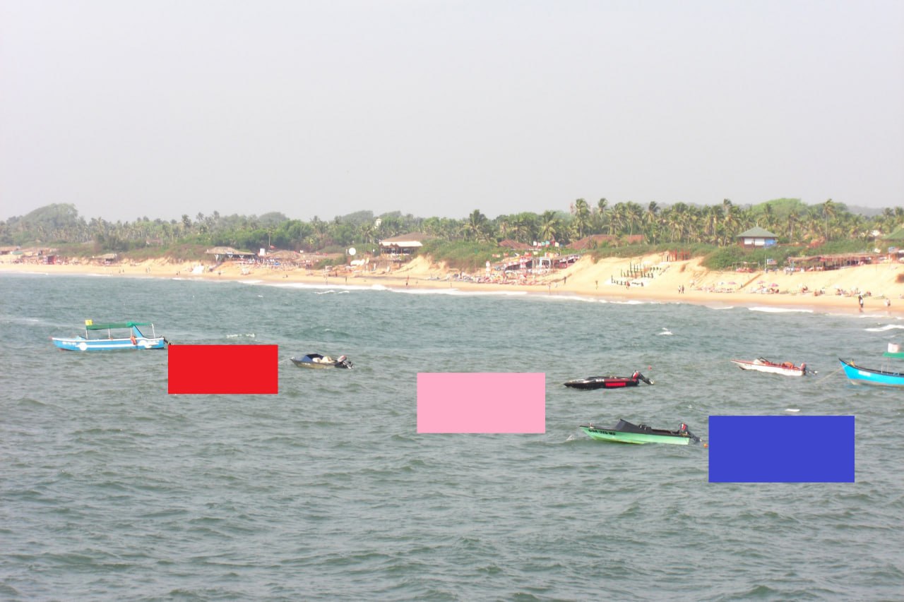 4) белая лодка закрашена розовым квадратом.