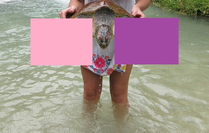 1) у черепахи был ниже опущен плавник под розовым квадратом.