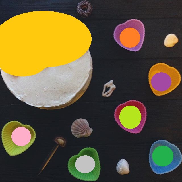 4) в форме сердечка с зелёным кругом, есть что-то, предположу, что это что-то, что не вошло в композицию украшения торта.