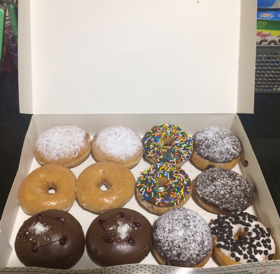 Не всех видов было по 2 пончика. Даю 4 бала.