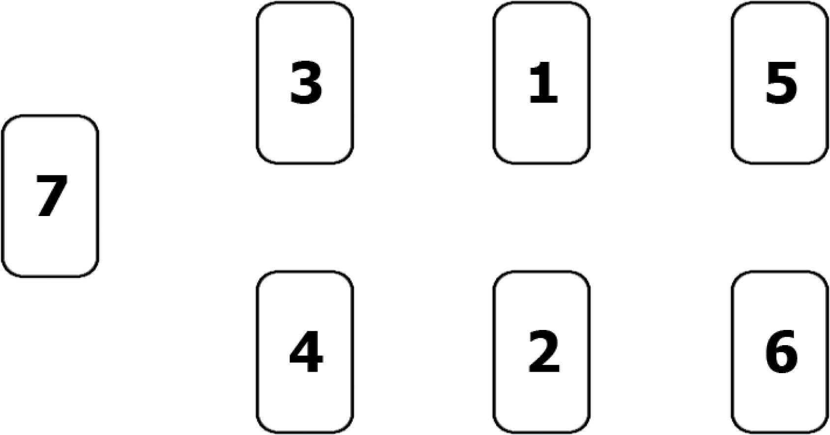Поэтому его нельзя раскладывать слишком часто, чтобы не искушать судьбу. Сигнификатор выбирать не надо, так как этот расклад — дополнительный, касающийся того, что мы узнали из предыдущего расклада. Надо выполнить предварительные действия и взять семь карт, а затем разложить их согласно схеме.