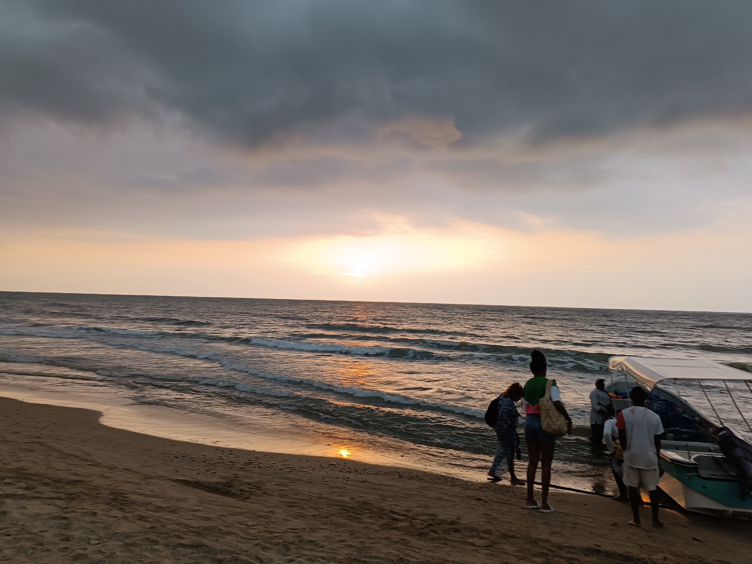 Всего на фото 5 человек, включая того, что идет вдоль прибоя. К лодке прикасаются трое.