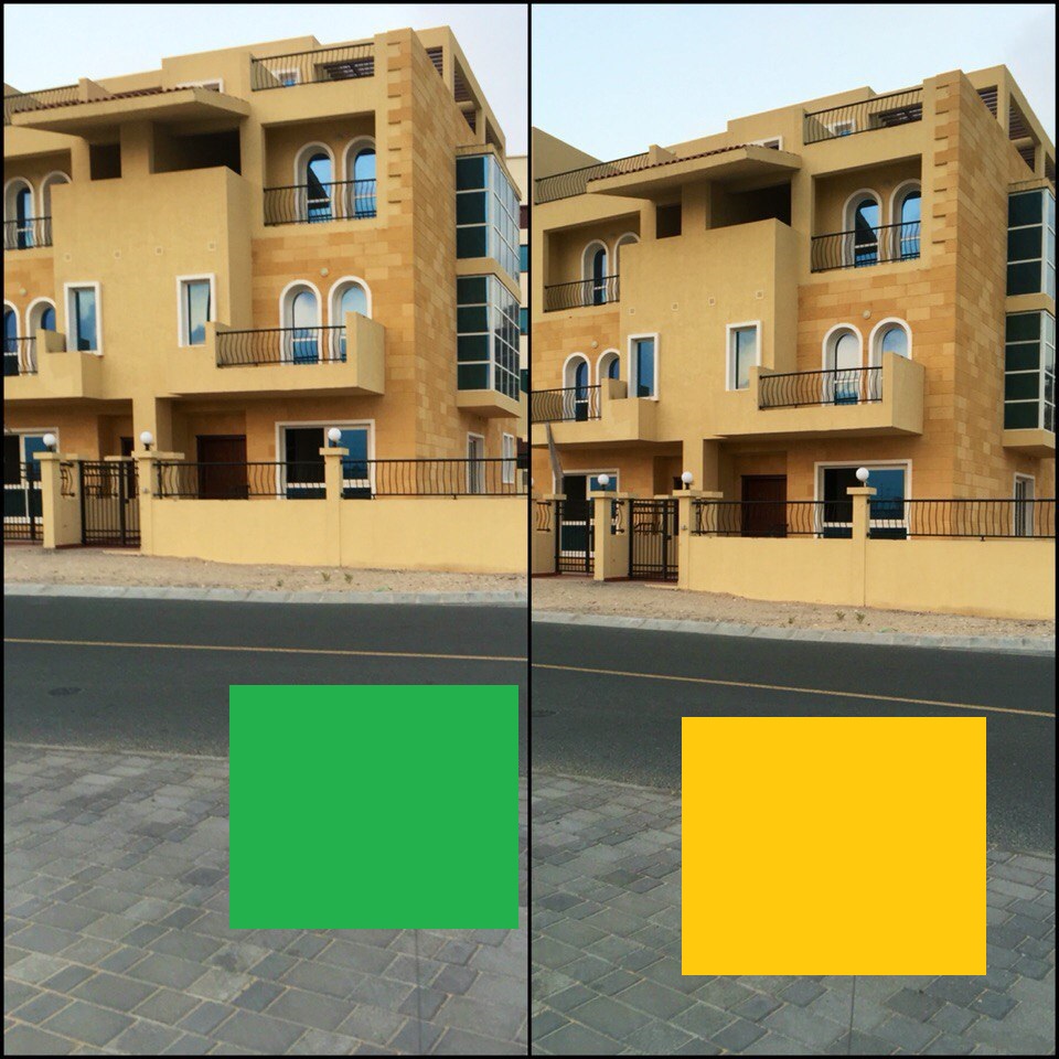 Идёт, что красные шарики закрашены под зелёным и фиолетовым квадратом.